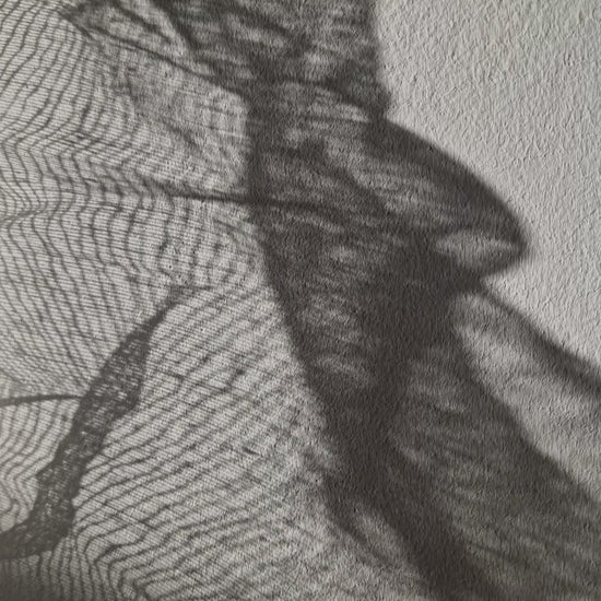Een stukje linnen stof hing aan de muur - ik was vast ergens mee aan het experimenteren - en het zonlicht projecteerde een prachtig schaduwwerk op de wand. Wat een cadeautje. Dat licht-schaduwspel is vanuit verschillende perspectieven gefotografeerd.