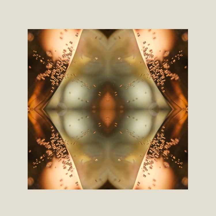 Deze print begon ooit als champagneglas. Een vluchtig moment waarin bubbels, licht en glas samensmelten tot een kleurrijke reflectie. Zie je het detail? Of juist een geheel?