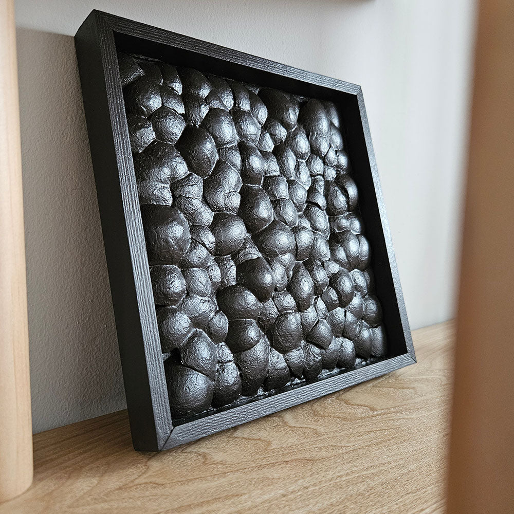 Eierschalen zijn kwetsbaar. Maar juist in kwetsbaarheid schuilt kracht. En dat straalt dit schilderij uit. Alle eierschalen zijn één voor één bevestigd. Door de schalen bewerken met de juiste materialenmix zijn ze ontdaan van hun breekbaarheid en in hun kracht gezet.