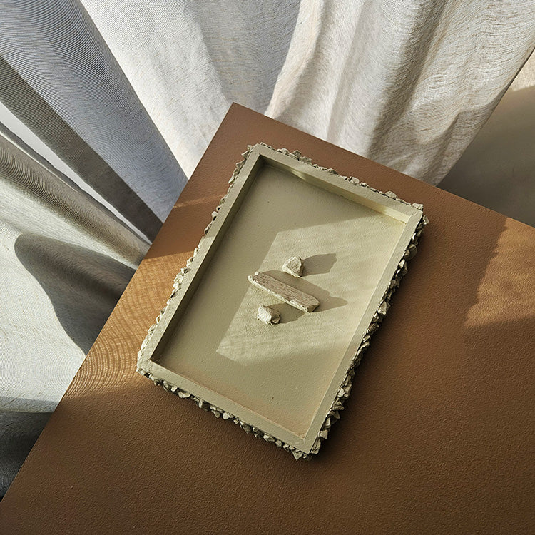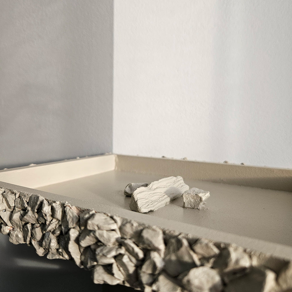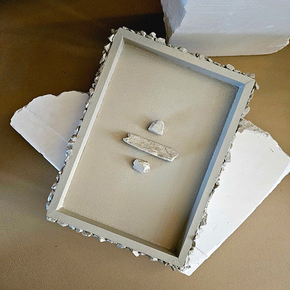 De stenen zijn met zorg geselecteerd om de juiste compositie tot stand te brengen. De abstracte vormen en patronen nodigen je uit om een eigen betekenis in de compositie te ontdekken.