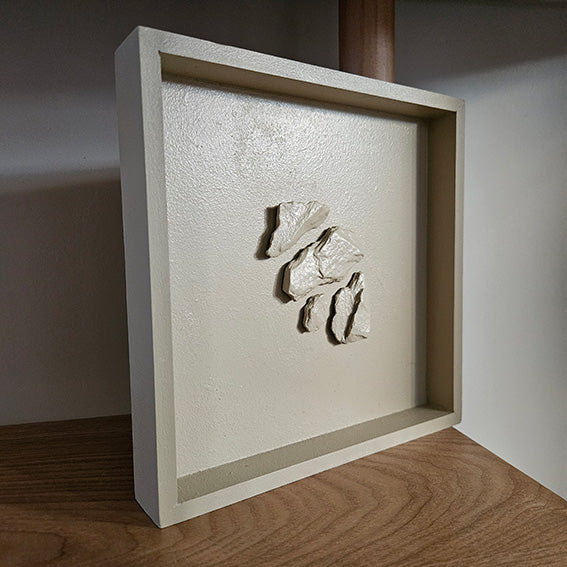 Alle schilderijen met stenen zijn geïnspireerd op en door stille kracht. Door monochroom kleurgebruik en de functionaliteit van stenen, bewijzen deze schilderijen dat júist in subtiliteit kracht schuilgaat! Stenen staan symbool voor kracht. Op het eerste oog lijken ze functioneel, onopvallend en soms misschien zelfs saai. Maar ze kunnen ook verwonderen door hun kleuren, organische of soms strakke lijnen. Zoveel ineen, áls je maar lang genoeg kijkt.